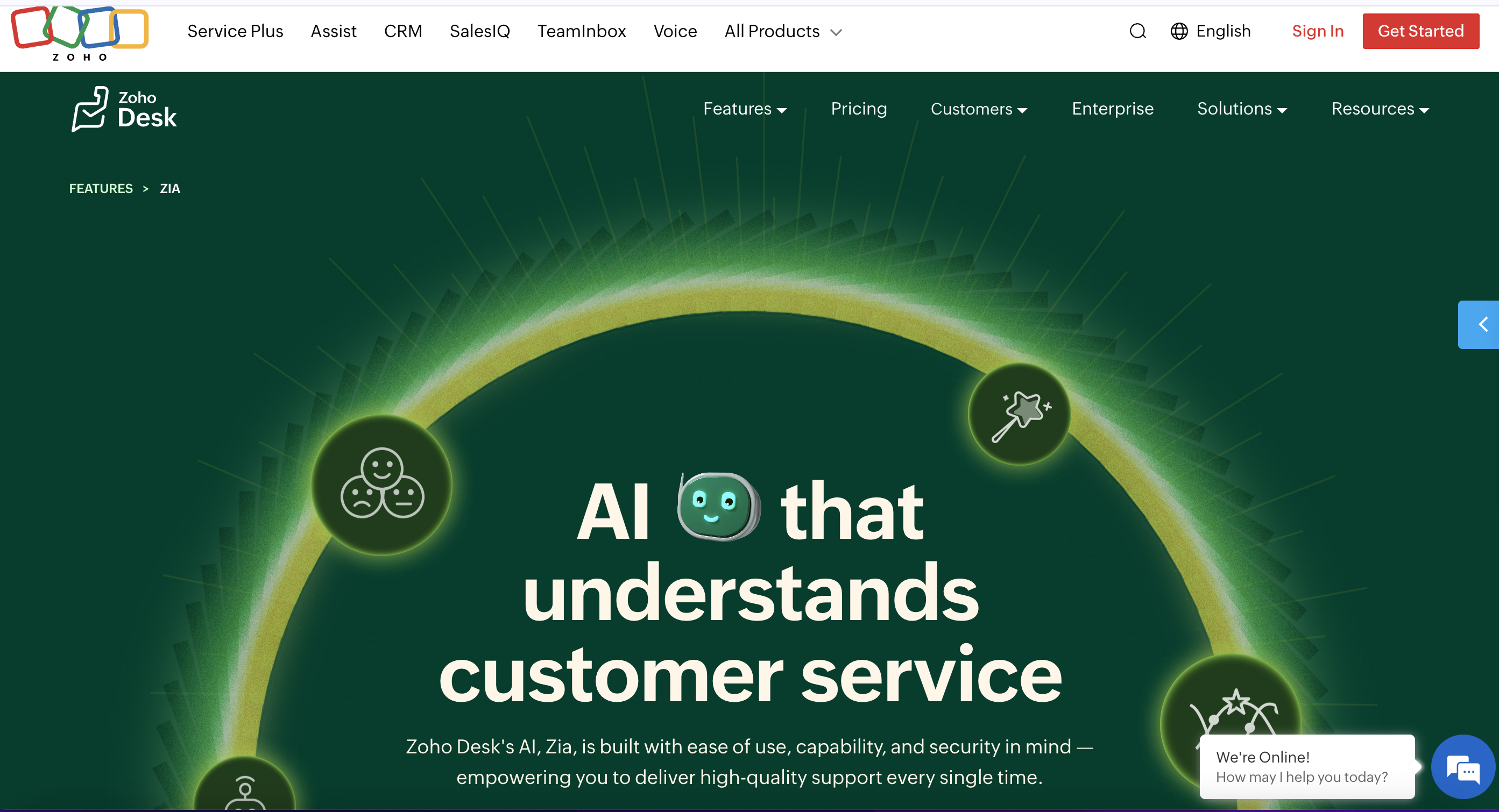 - Zia AI Assistant: Automates responses, suggests solutions, predicts sentiment, and flags anomalies in customer conversations.