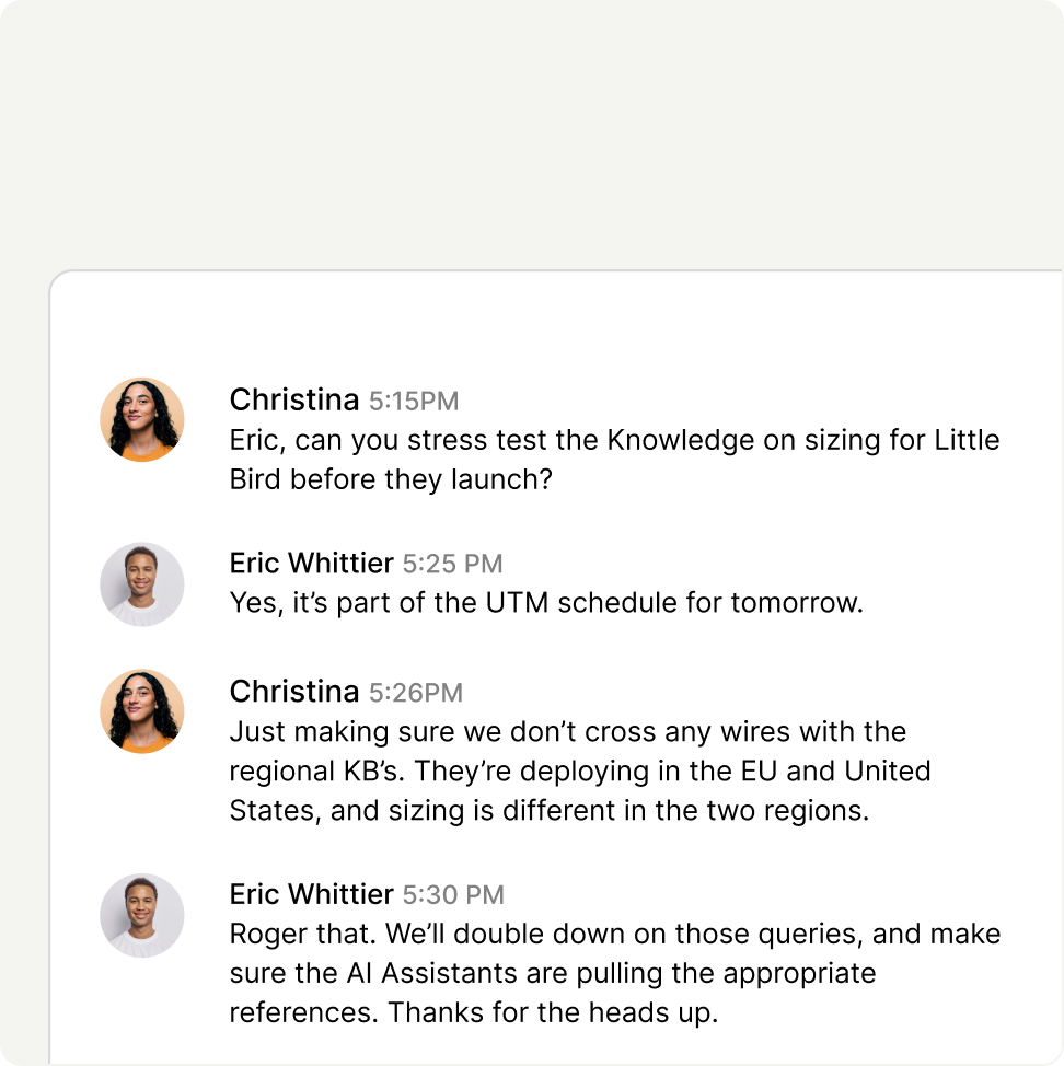 Responses are stress-tested in simulated and UAT conversations to reveal where the AI might misinterpret, retrieve the wrong info, or leave gaps. Those issues are corrected before your customers ever experience them.