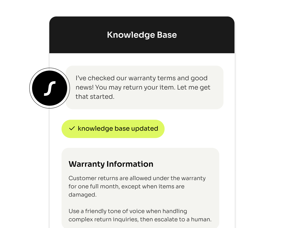 The AI also tracks changes in your policies, active promotions, technical documents and more, and notifies our staff to help keep them up-to-date. This ongoing process keeps your knowledge base current, relevant, and reliable at all times.